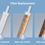To replace filters, simply open the cover of the showerhead, carefully remove the stainless steel filter screen, tap a few times on the back of the showerhead, and replace the disc filter.